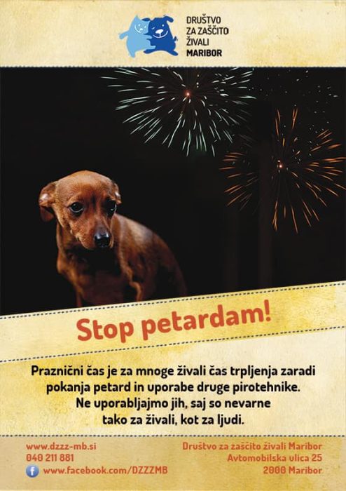 Domače in prostoživeče živali so zaradi uporabe pirotehnike v prazničnem času izpostavljene dolgotrajnemu stresu, je opozoril veterinar Marjan Kastelic. Pokanje in bliski lahko pri živalih izzovejo napade stresa in panike. “Pirotehnika s svojimi zvočnimi in svetlobnimi efekti draži živali. Že na splošno se živali bojijo grmenja, ker jim to predstavlja nevarnost. Živali so v tem prazničnem času, ki zanje ni nič kaj prazničen, še toliko bolj pod stresom,” je povedal Kastelic. Z domačimi živalmi se je treba izogibati območij, kjer je večja možnost, da bodo ljudje uporabljali pirotehniko. V bližini teh območij pa je treba imeti žival pri sebi, da se bo počutila varneje. Uporaba pirotehnike lahko pri živalih v najslabšem primeru izzove hude napade epilepsije. Zaradi paničnih reakcij lahko živali tudi pobegnejo. To se lahko po veterinarjevih besedah zgodi ob nenadnem poku ali močni svetlobi ob uporabi raket tudi na najbolj nedolžnem sprehodu. “Domače živali se lahko v tovrstnih primerih izgubijo, postanejo žrtve prometnih nesreč, lahko jih pa tudi nikoli več ne dobimo nazaj, kar je seveda najbolj tragično,” je opozoril.